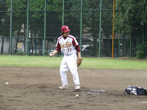 練習のほうは前日の影響でみんなが筋肉痛うや体のハリ。ストレッチをしてまずは走塁練習。ベースの踏み方、駆け抜け方、リードの仕方、牽制の対応法、第2リードの取り方、スライディング練習。普段出来ない細かい練習ができました。リードの大きさよりも第2リードの取り方、スタートの切り方といった重要ポイントを確認しました。