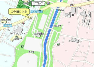 橋を渡るとすぐに「交通公園入口」という信号があります。そこを左折してください。