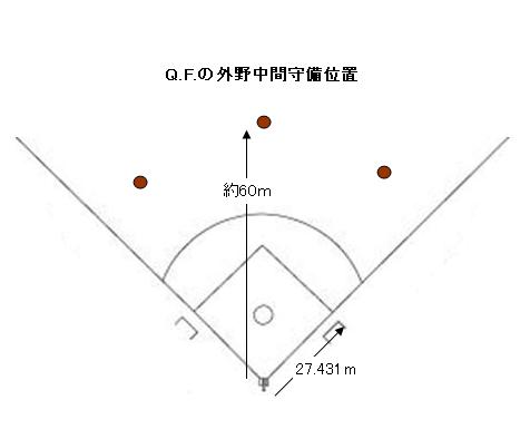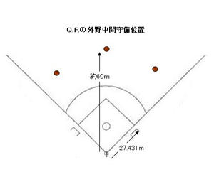 各ポジション共にホームベースから約60メートルのあたりを中間守備位置とします。