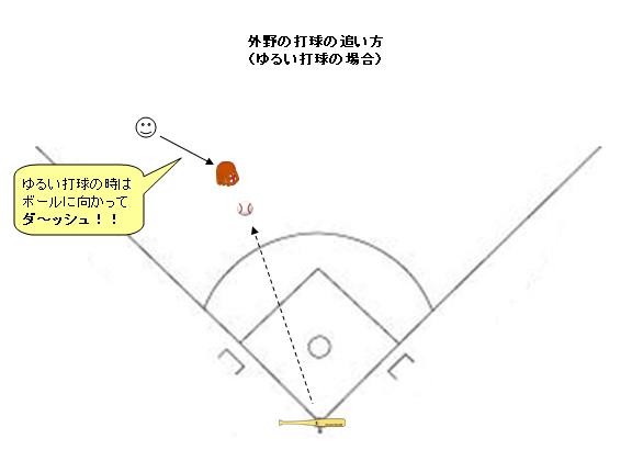 内野の頭を越えてきたゆるいボテボテの打球などの場合は、打球に向かって一直線!!とにかくダッシュです!!