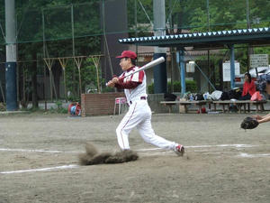 2回は0点に抑えられたものの、3回、きんのセンター前でノーアウト1塁。フニャ、よいちの四球の後、助っ人の志村さんにレフトオーバーの2ベースが生まれて3点を奪取!