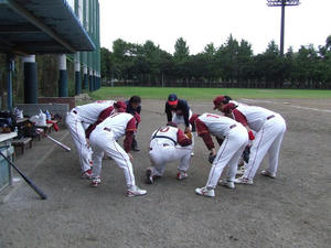 トスバッティング、外野フライと、試合前にいい汗流せたね。