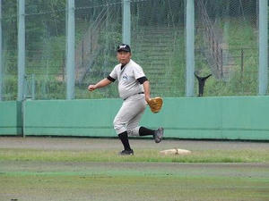 序盤は内野からの送球を上手くさばいてたものの、やはり...高めに外れた球を見事にポトリ...やっぱ少年用だったのかな?(笑) でもいいよ!野球はまず格好からだもんね♪