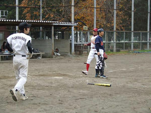 ファーストへ動いていた...いや...走っていたよいちもアウトになりこの試合2度目のダブルプレー!!
