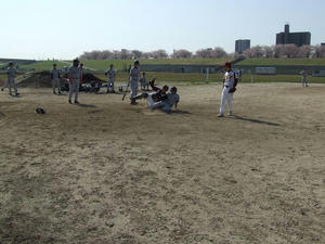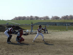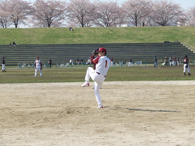 相手の監督さん自らが投げる球は、スピードもコントロールも切れのある良い球でした。
