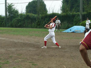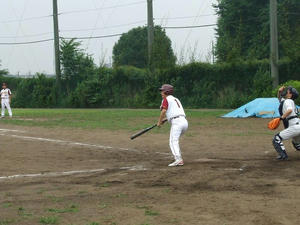 1回表2アウトを取った後、1点を奪われたものの、その裏...四球で出塁し盗塁で2塁に進んだエミッちょをおいてトリがセンター前に弾き返し、0アウト1塁3塁。