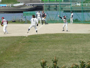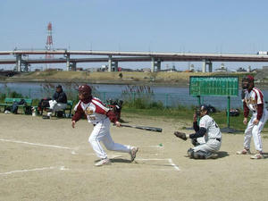青空が広がった西新井橋河川敷野球場。