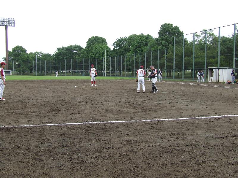 しかし、3番しょうちゃんの強烈な当たりがサードの好捕にあい、玄ちゃんがセカンドに戻れず2アウト。