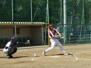 先頭のエミッちょが四球で出塁すると、エンドランは失敗したものの、結果2塁まで進む。