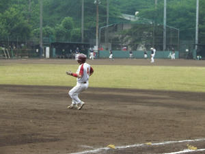 3つ目、これもボテボテのゴロをキャッチし損なったプレー。あとで誠一に聞いたら、キャッチの位置が体から遠すぎたとの事。もう少し体に近いところ(つまり目から近いところ)だったら捕れていた。