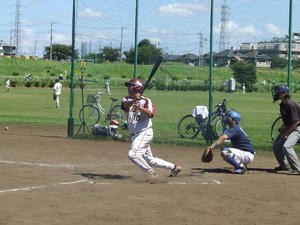 初回、先頭のしょうちゃんがレフト前ヒットで好調をアピール!