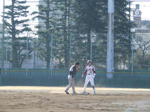 ところが、サードを蹴ったところでエミッちょの動きがおかしい...