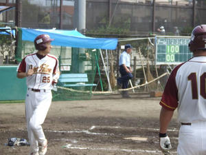 6回裏、桐さんがレフト前で出塁すると盗塁などで3塁まで進む。