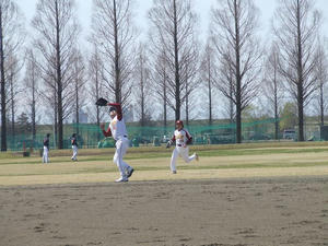代わった直後のセカンドゴロを難なく捌いて...屈伸運動...