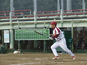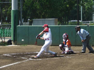 前の打席から良いあたりを見せていたべんちゃんが、レフトオーバーのツーベースヒット・タイムリーを打ったのだ!!!完璧なあたりで上高田グランドなら、ネット直撃してたんじゃないかなぁ。次回も頼むよ、べんちゃん。