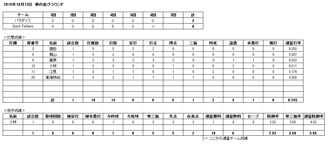 誠一の打席数としょうちゃんの打席数がそれぞれ1つずつ少なく報告してしまいました。