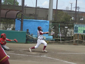 迎えた3回裏、先頭のエミっちょのサードゴロが失策を誘い無死ランナー1塁!