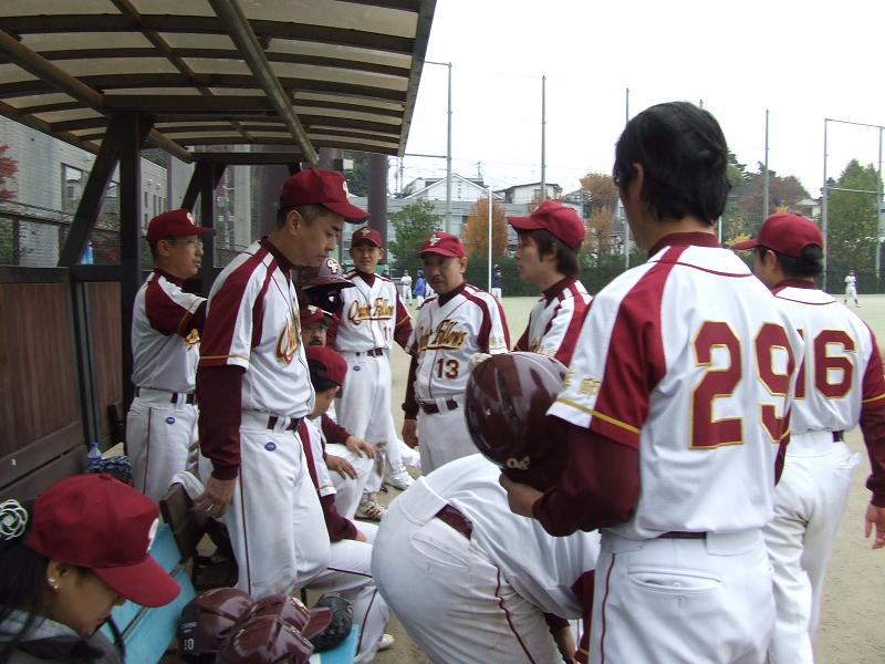 ベンチで応援の女性陣も寒そうだ...いよいよ秋ですな~。