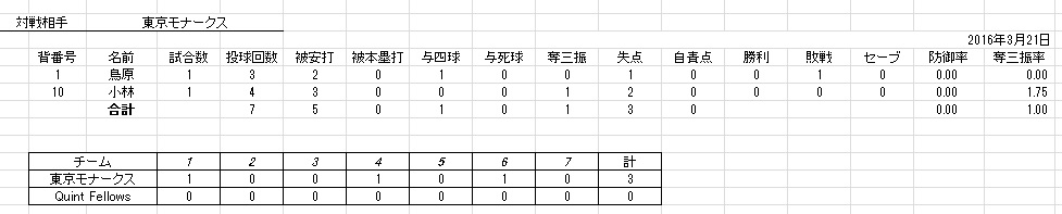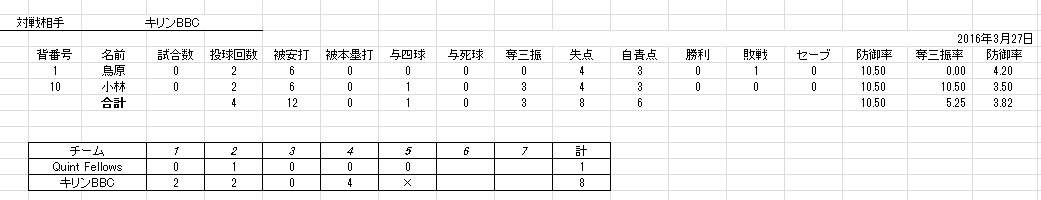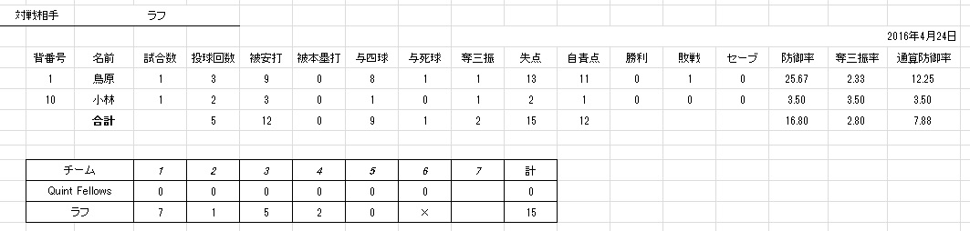 ちなみにこの日のクイントフェローズ、ヒットは横ちゃんが放った力技のレフト前ヒット1本でした。