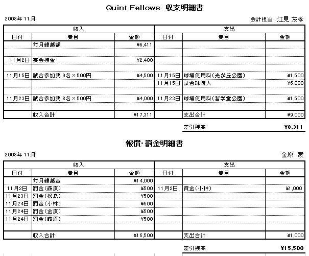 | 11月2日 | 上高田球場 | Quint Fellows | 13 | - | 6 | サムライ |