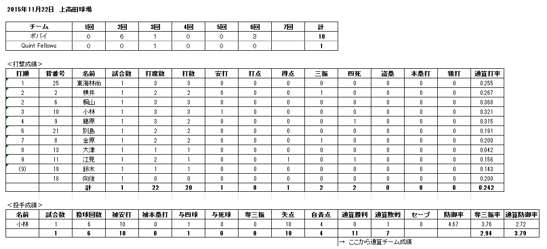 ■場所 : 上高田球場A面 1塁側後攻
