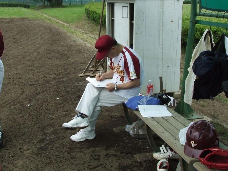 怪我の治療中の誠一も、ちゃんとユニフォームを着て、監督&スコアラーとして駆けつけてくれた!!