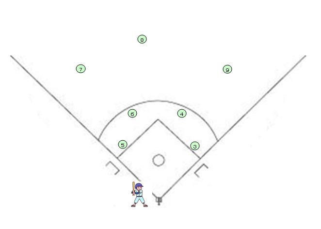 上のイラストは右バッターの守備位置です。