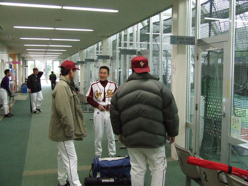 思い出の神宮軟式野球場で今年の初戦を迎えることが出来たのも何かの縁。気の早いメンバーは9時のオープンと同時にバッティングドームで練習!