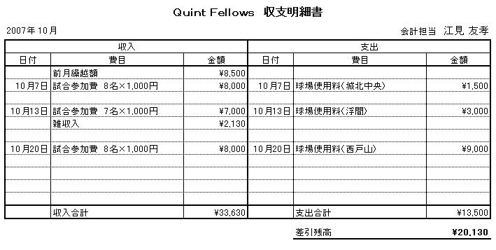 この残高には、みんなのユニフォーム代(募金などを含む)の残金と誠一の入会金は含まれていません。