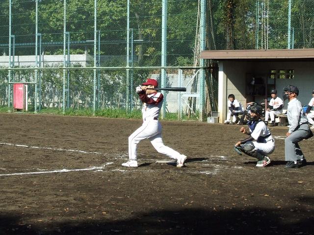 試合に戻って、よいちの打席。0-3から4球目を打った!