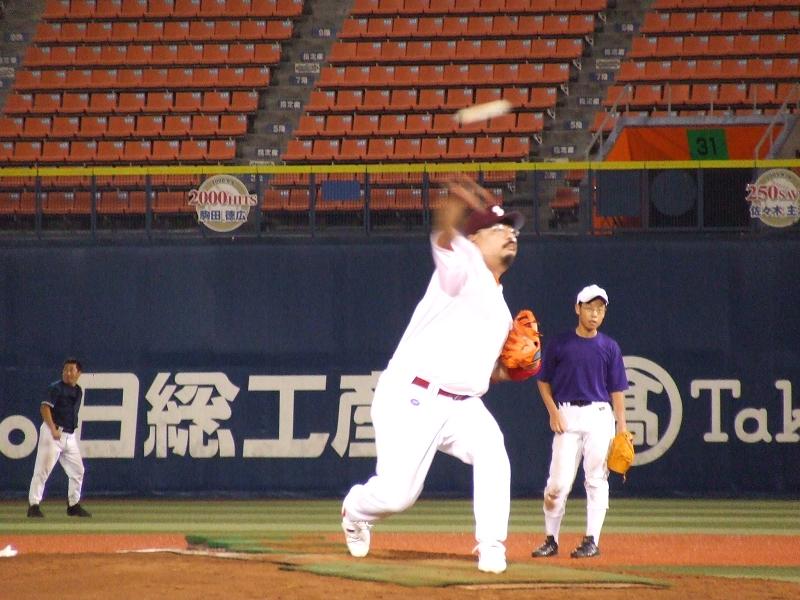 Quint Fellowsの先発は、ゲンちゃん。キッチリ0点に抑えてくれて締まったゲームになったゾ!!