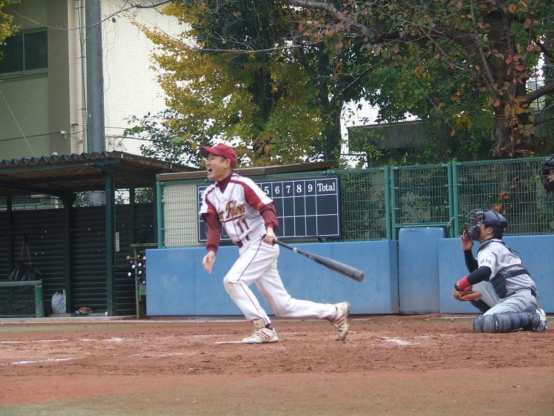 しょうちゃんが絶妙のバントヒットで出塁(2盗)すると、首位打者をキープしている横ちゃんが、タイムリー3ベース!!