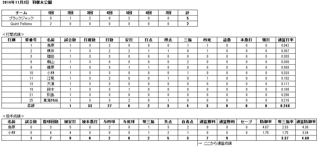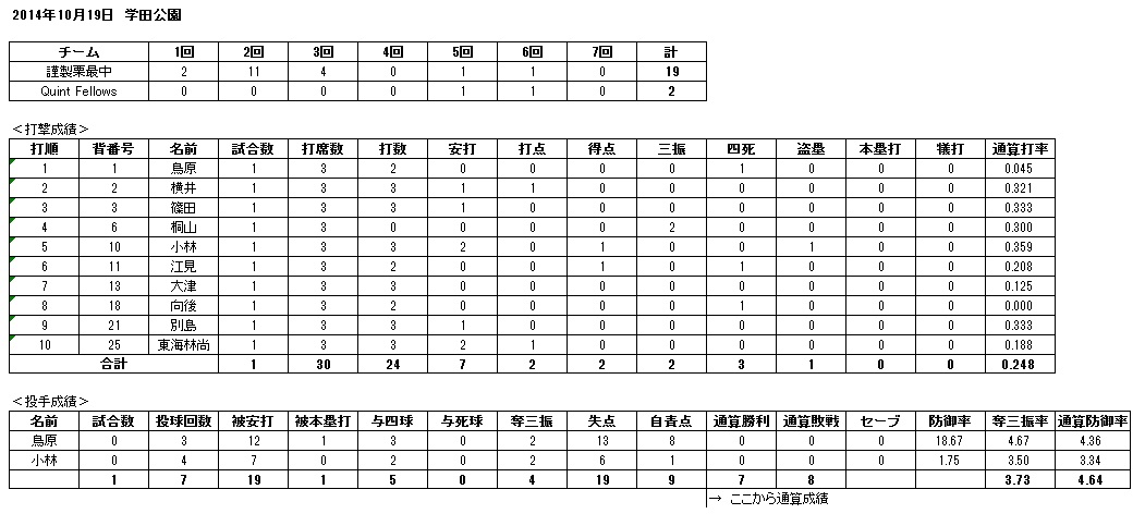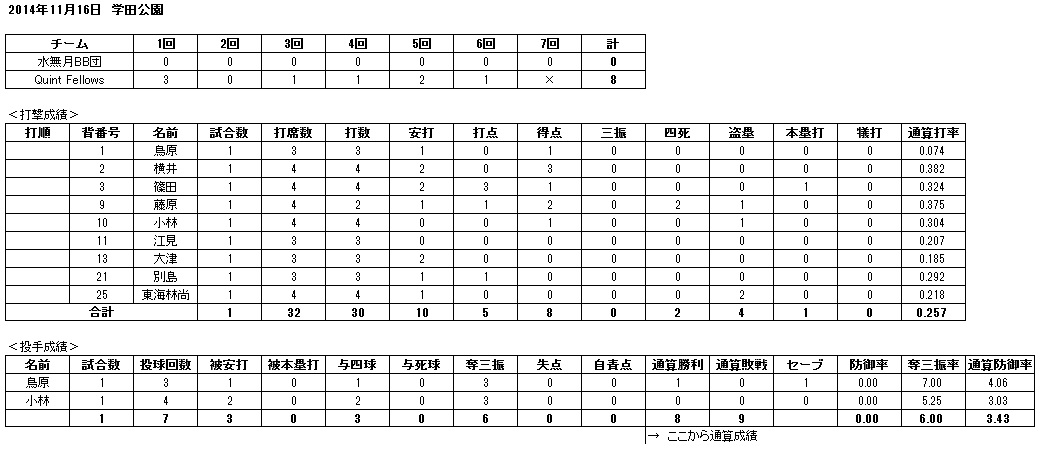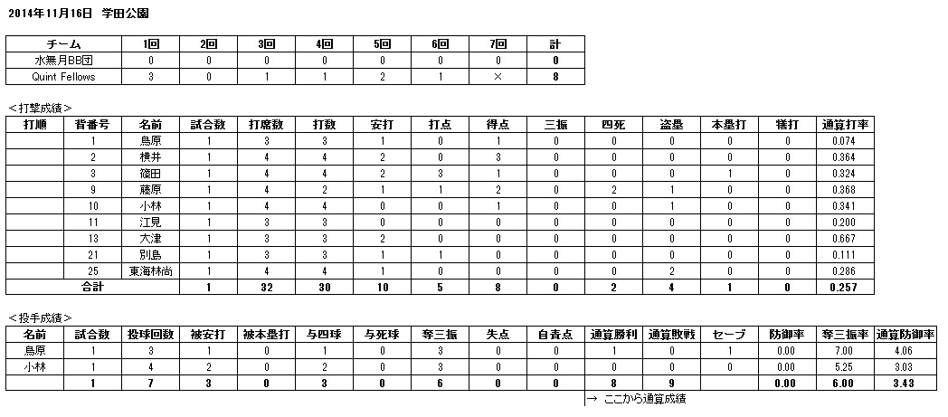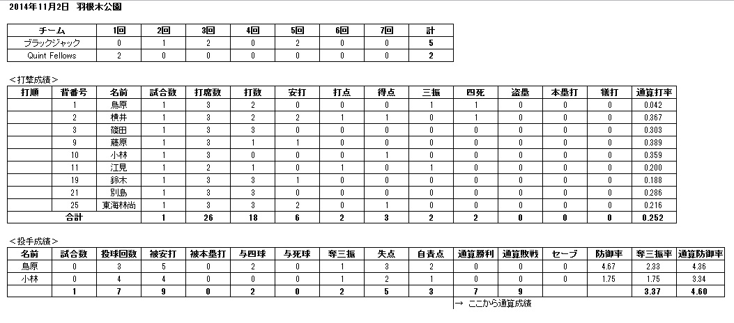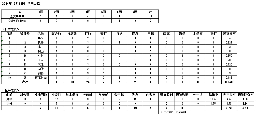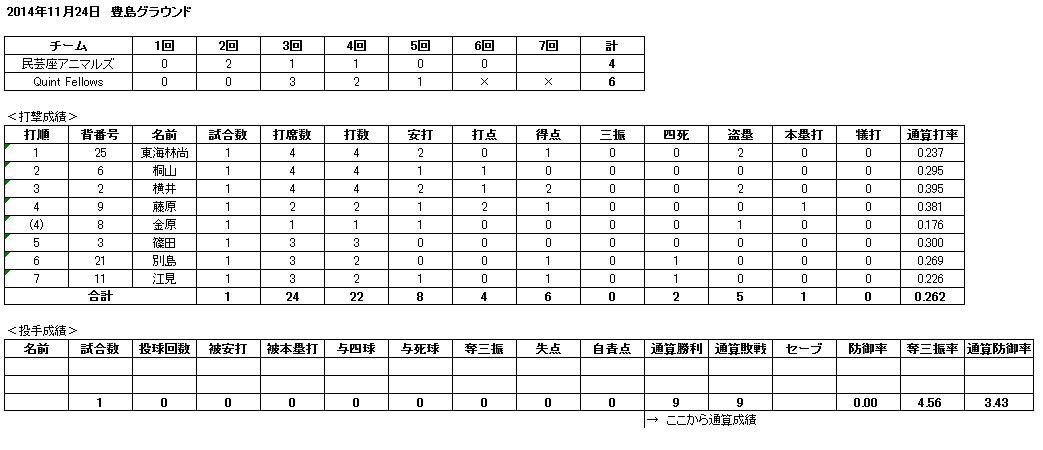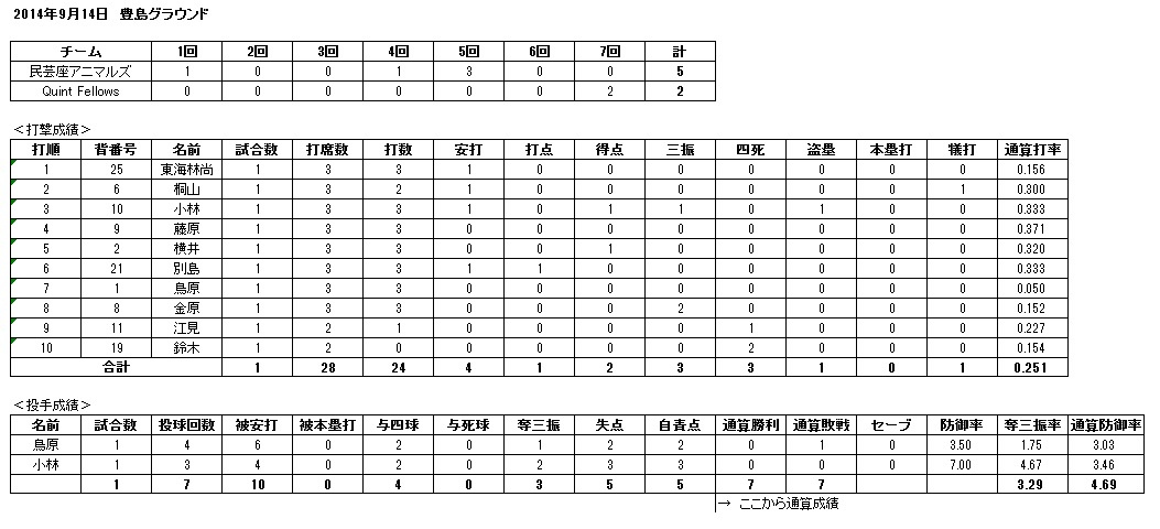クイントフェローズの攻撃は、初回に桐さんがレフト前ヒットで出塁するが、3回までヒットはこの1本。