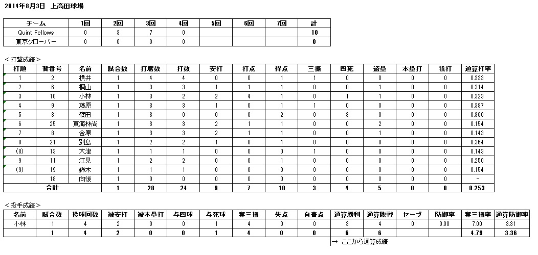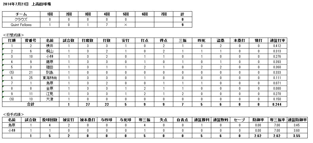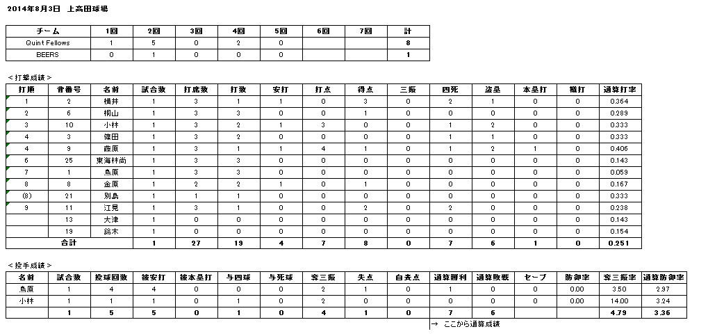 ■場所 : 上高田球場A面 3塁側先攻