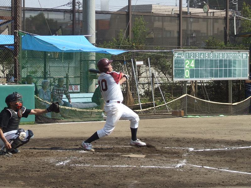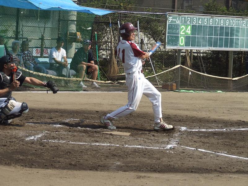 しょうちゃんが四球を選ぶと桐さんの送りバントもあって、得点圏に進む。