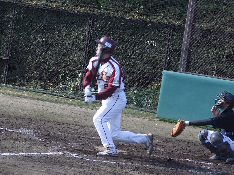 1死からトリがチーム初ヒットを放つと、続く背番号3番、買ったばかりのユニフォームで登場した篠田がタイムリー3ベースヒット!!