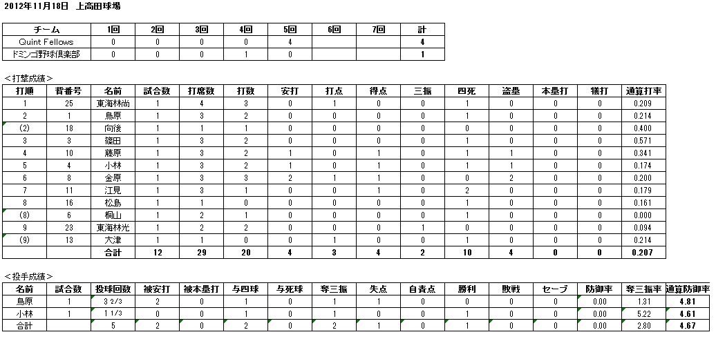 ■場所 : 上高田球場A面 3塁側ベンチ・先攻