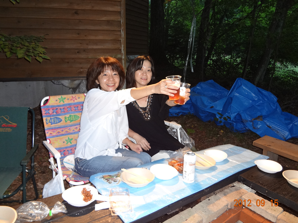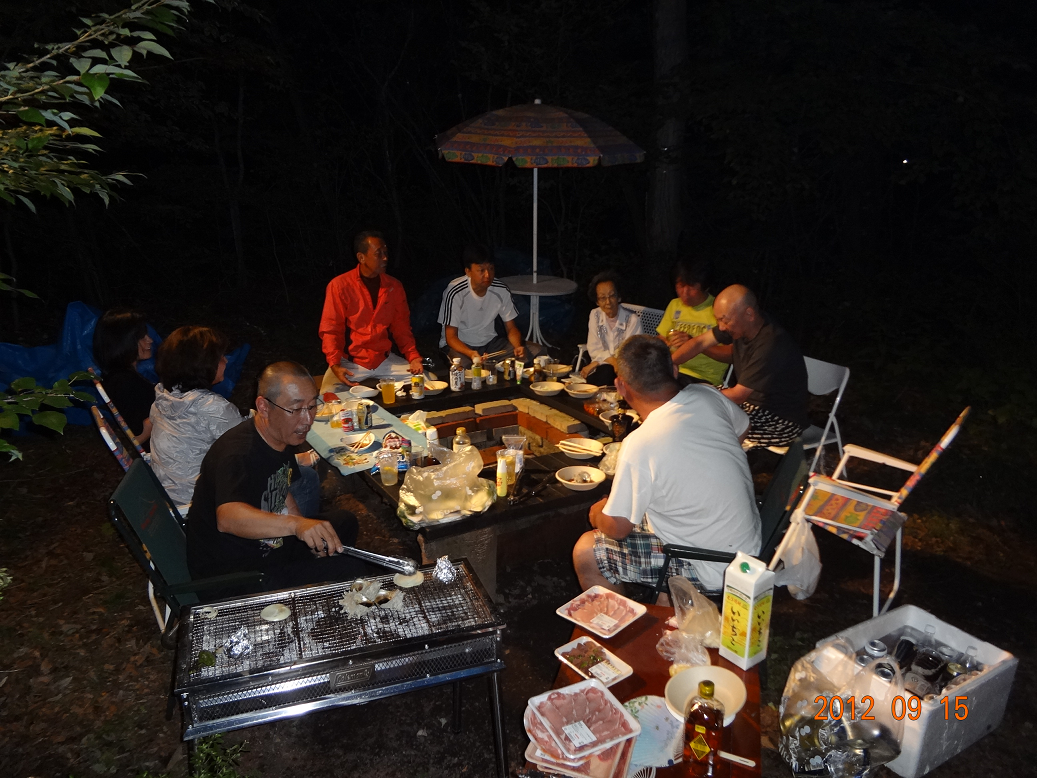 近くの温泉で疲れを取って、夜はバーベキュー。のども渇いているのでお酒が進みすぎ。さらには誠一が持ってきた恐怖の”中国土産の白酒”。なんと46度。みんなに味見してもらったけど、結局は数人で飲み干して・・・