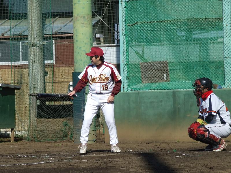 その裏、クイントフェローズの攻撃は1番誠一、2番エミッちょが仲良く(?)四球を選び、更に敵失もあって2塁3塁のチャンスを作る。