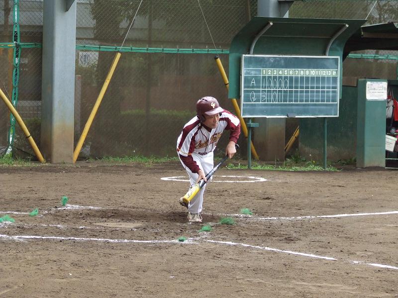 続くエミッちょは、試合前の打ち合わせ通り、犠打を決めランナーを3塁へ進ませる。