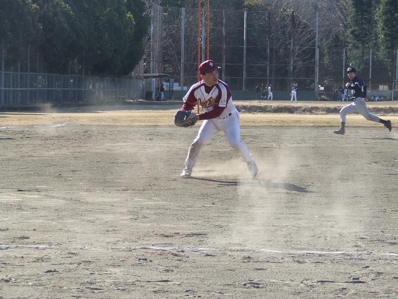 帽子をすっ飛ばしながら突っ込んできたものの、買ったばかりの新しいグラブ(SSK)にボールは収まらなかった...