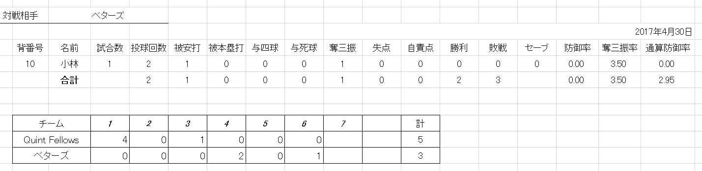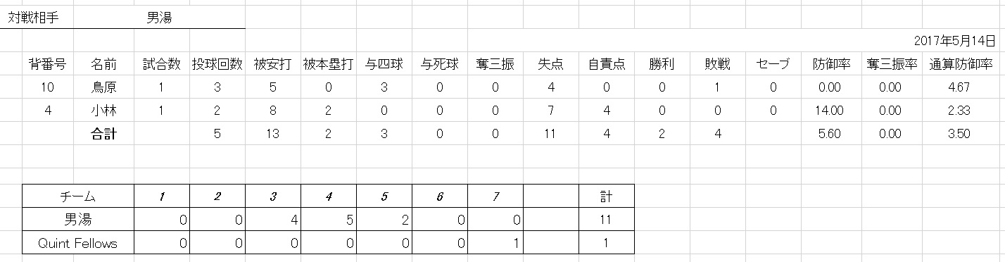 2017 中野区軟式野球連盟 3部春季大会 1回戦
