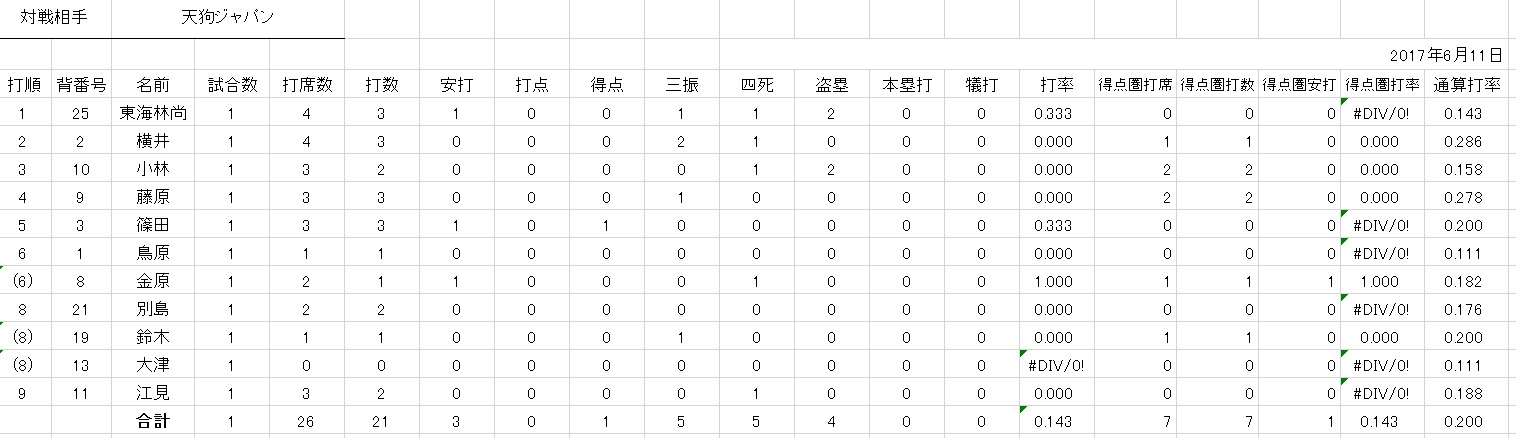 フニャに特大のホームランも!!!!!! 結果は6対6の引き分けでした
