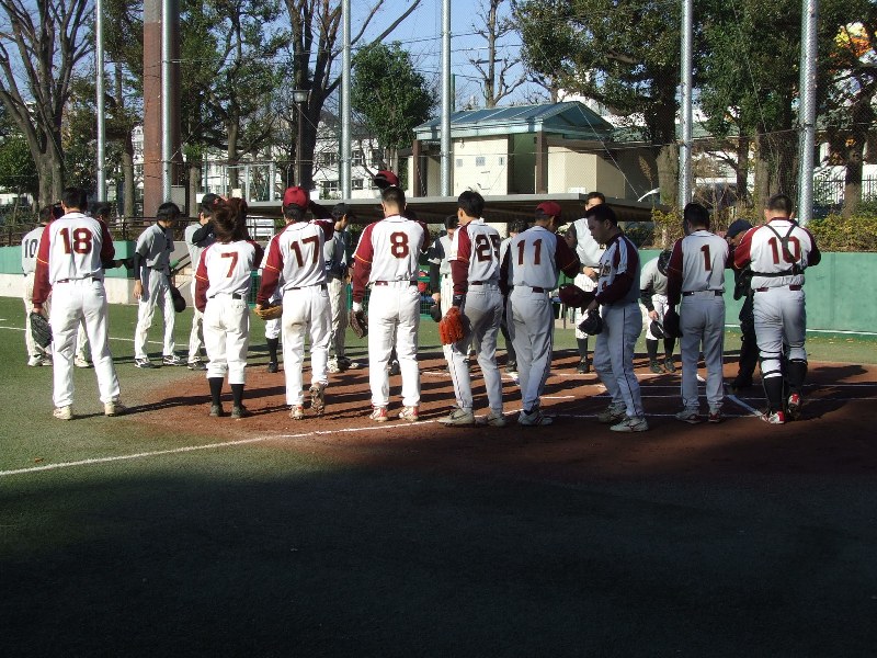 寒いので合同でシートノックをやってから9:30頃試合開始とのこと。