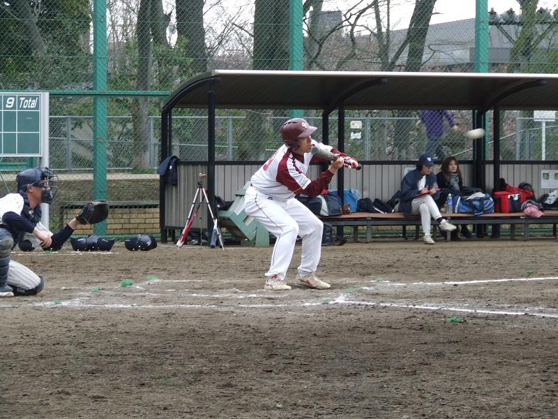 先頭で登場したエミッちょの打球はセカンド(女性)の頭上をピロ~ンと超えた!!